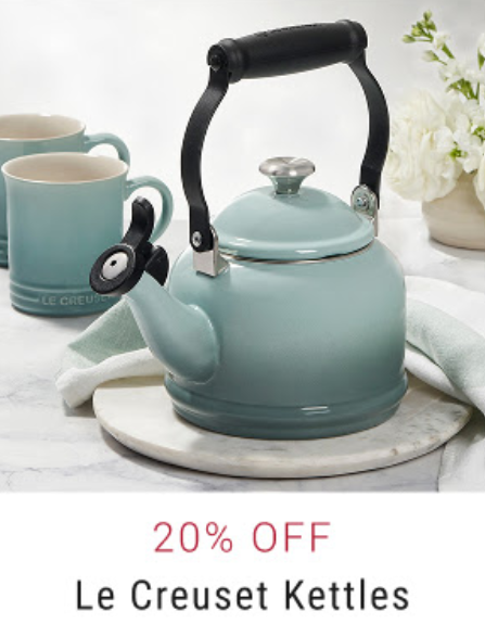 Don't miss out! Shop in store and get 20% off Le Creuset kettles.