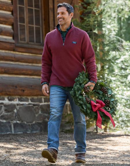 Our textured pullover gives sweater vibes with a sweatshirt feel. Level it up with a supersoft shirt, jeans & slip-on boots. Shop in store today!