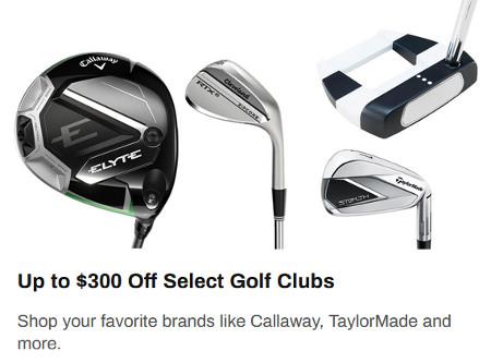 Don't miss this! Shop in store and get up to $300 off select golf clubs from Callaway, TaylorMade and more.