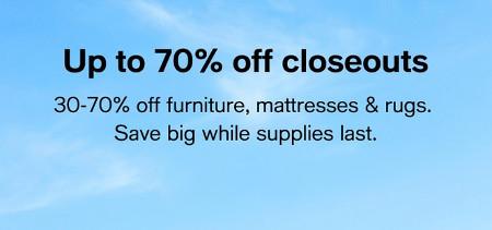 Save big while supplies last! Shop in store and get up to 70% off furniture, mattresses & rugs.